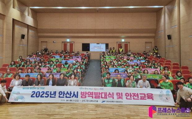 [프레스뉴스] 장현준 기자= 안산시(시장 이민근)는 지난 9일 상록구청 상록시민홀에서 ‘2025년 안산시 방역발대식 및 안전교육’을 실시하고, 시민참여 방역 활동을 본격적으로 진행한다고 10일 밝혔다.