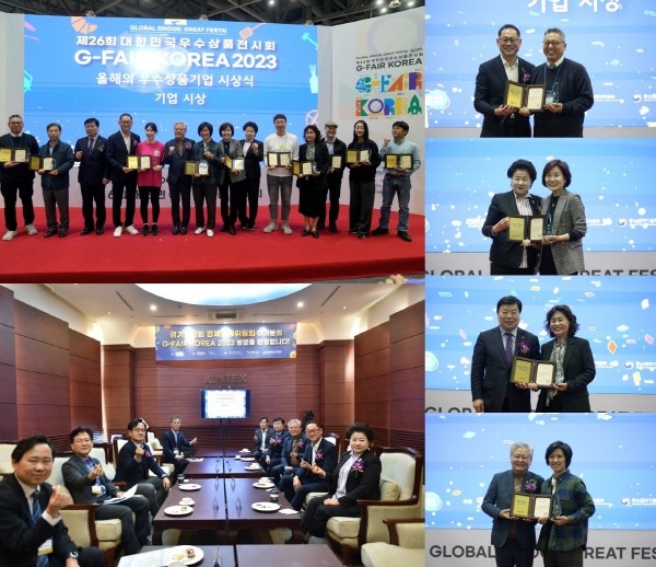 [프레스뉴스] 김대일 기자= 경기도의회 김완규 위원장(국민의힘, 고양12)을 비롯하여 남경순 부의장(국민의힘, 수원1), 이병길 의원(국민의힘, 남양주7), 홍원길 의원(국민의힘, 김포1) 등 경기도의회 경제노동위원회 위원들(이하 ‘위원회’)이 지난 27일 일산 킨텍스에서 개최된 ‘제26회 대한민국 우수상품전시회(G-FAIR KOREA 2023)’ 현장을 찾아 우수기업 시상 및 전시장 라운딩을 진행했다.
