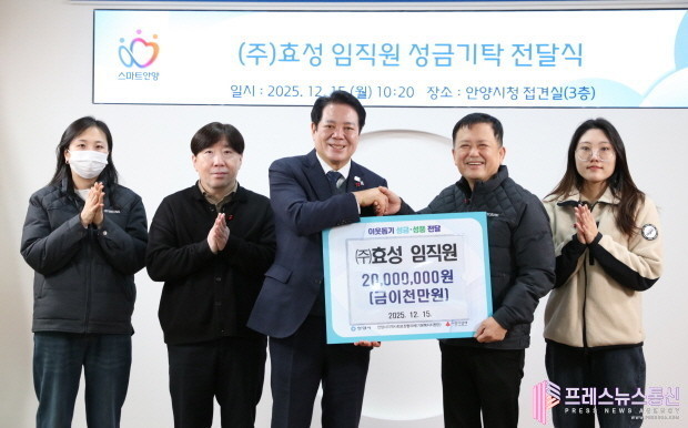 안양시, ㈜효성으로부터 이웃돕기 성금 2천만원 기탁받아