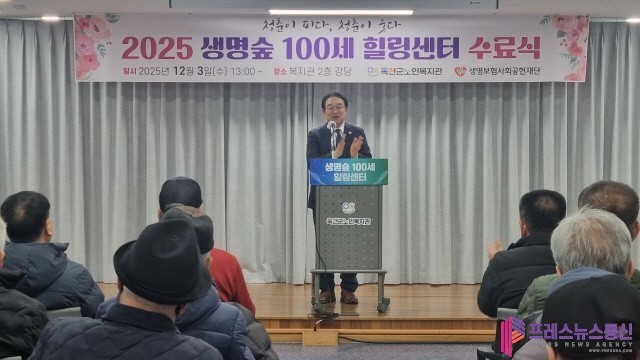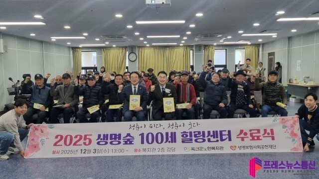 [프레스뉴스] 류현주 기자= 옥천군노인복지관이 생명보험사회공헌재단의 지원으로 운영된 「생명숲100세힐링센터」 2025년 수료식을 지난 3일 옥천군노인복지관에서 개최했다. 이번 수료식에는 금년도 프로그램을 마친 수료생 24명을 비롯해 졸업생, 자원봉사자 등 50여 명이 참석해 1년간의 활동을 돌아보는 뜻깊은 시간을 가졌다.