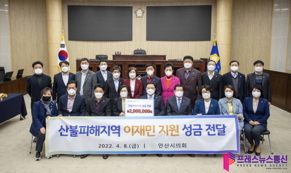 [프레스뉴스] 김대일 기자= 안산시의회(의장 박은경)가 최근 산불 피해 지역 복구와 이재민 지원을 위한 성금을 전국재해구호협회에 기탁했다.