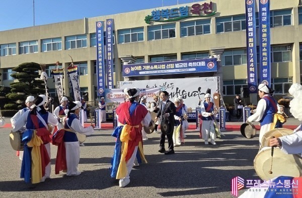 옥천군, 농어촌 기본 소득 시범사업 추가 선정 축하 팡파르~ 범군민 퍼포먼스 선보여