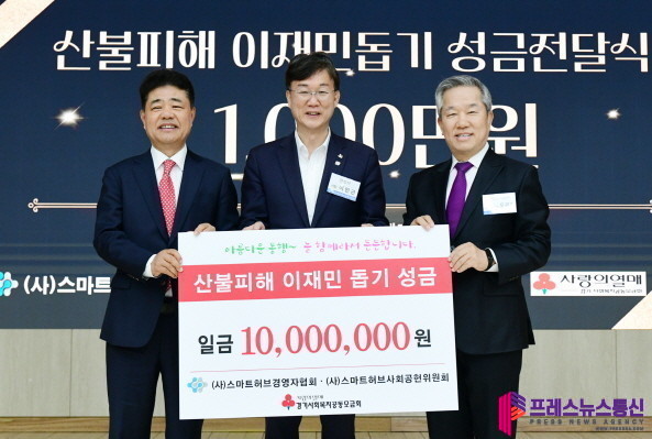 안산시(시장 이민근)는 (사)스마트허브경영자협회(회장 이준기)로부터 영남지역 산불 피해 복구를 위한 성금 1,000만 원을 기탁받았다.