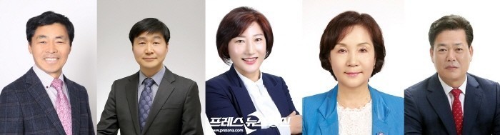 | ▲ 안산시의회가 제272회 임시회에서 의원발의 조례안 5건을 심의한다. 사진 왼쪽부터 이번 임시회에서 심의하는 의원발의 조례안을 발의한 강광주 김태희 현옥순 이경애 김정택 의원의 모습(사진=안산시의회) |
