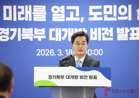 김동연 지사는 18일 성평등 파주 전시·교육관에서 경기북부 대개발 비전 선포식을 열고 “국민주권정부 출범 이후 경기북부는 새로운 도약의 전기를 맞았다”며 “경기도 역시 경기북부에 대한 특별한 구상을 그동안 준비해왔다. 경기북부 대개발 2040 비전을 통해 경기북부의 잠재력을 깨우고 대한민국의 새로운 성장축을 만들겠다”고 말했다.