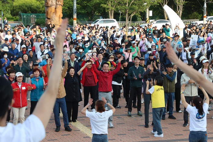 걷기대회는 사천시청 노을광장에서 출발해 이디야커피숍, LH공사 주차장, 백천교, 장애인복지관, 백천동 건어물, 백천동 삼거리에서 반환해 사천시청 노을광장으로 돌아오는 총 4km 구간으로 진행됐다.