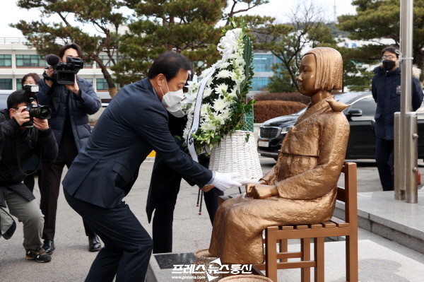 경기도의회 장현국 의장, 14일 ‘道의회 평화의 소녀상’ 건립 3주년 기념 헌화