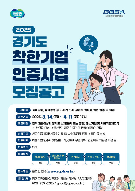 | ▲2025 경기도 착한기업 인증사업 모집공고 포스터(사진=경기도경제과학진흥원) |