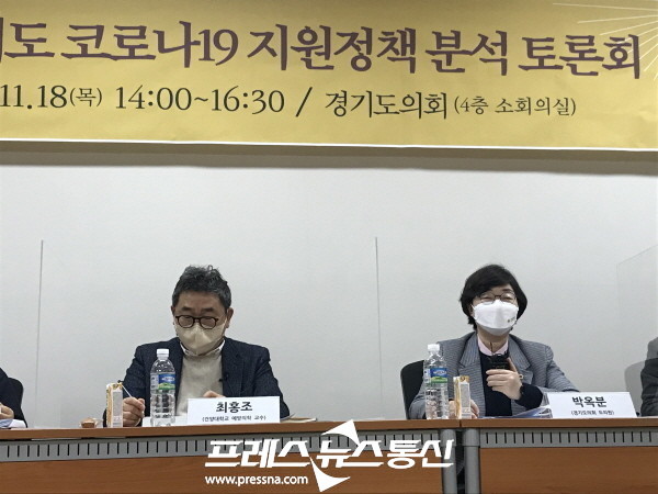 [프레스뉴스] 김대일 기자= 경기도의회 교육행정위원회 박옥분(민주, 수원2)의원이 토론자로 참가한 「노숙인, 이주노동자의 인원 관점에서 경기도 코로나19 지원정책 분석 토론회」가 11월 18일(목) 경기도의회 4층 소회의실에서 개최됐다.
