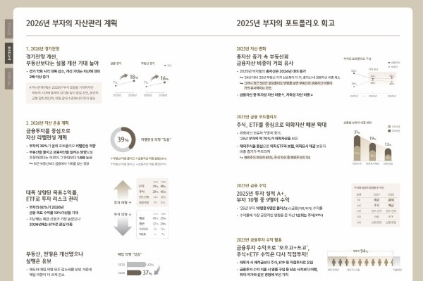 발간 18년째인 이번 「2026 대한민국 웰스 리포트」 보고서는 최근 10년 이내 부자 반열에 오른 50대 이하 자산가를 ‘K-EMILLI(K-에밀리, Korea Everywhere Millionaires*)’로 명명하고, 이들의 부 형성 과정과 투자 철학을 부자** 전체 집단과 비교 분석했다. 또한, 2026년 자산관리 전망, 상속ㆍ증여 트렌드, 부자의 모임(커뮤니티)과 부의 상관관계 등을 폭넓게 다뤘다.