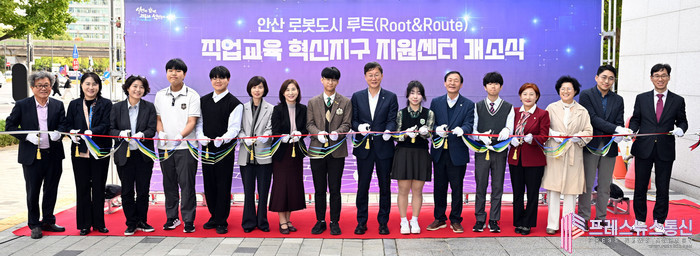 [프레스뉴스] 장현준 기자= 안산시(시장 이민근)는 지난 24일 안산시청 제3별관에서 안산교육지원청(교육장 김수진)과 ‘안산 로봇도시 루트(Root&Route) 직업교육 혁신지구 지원센터’(이하 센터) 개소식을 개최했다고 25일 밝혔다.