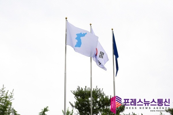 [프레스뉴스] 김대일 기자= 안산시의회(의장 박은경)가 15일 6.15 남북공동선언 22주년을 맞아 남북 화해와 협력의 상징인 한반도기를 게양했다.