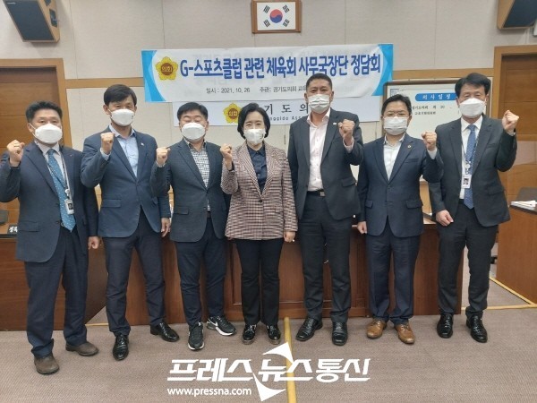 [프레스뉴스] 김대일 기자= 경기도의회 교육기획위원회 위원장 정윤경(더불어민주당, 군포1)의원은 임채철 의원(더불어민주당, 성남5)과 함께 G-스포츠클럽 관련 시・군 체육회 사무국장과의 정담회를 개최했다.
