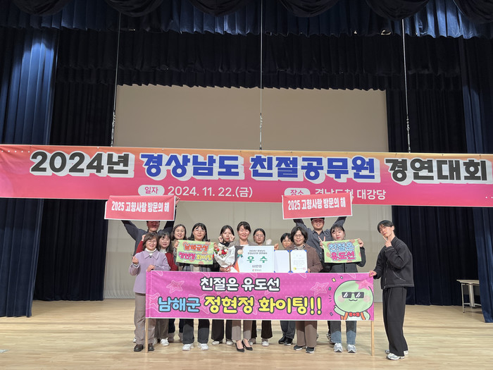 | ▲남해군이 지난 22일 경상남도청 신관 대강당에서 열린 ‘2024년 경상남도 친절공무원 경연대회’에서 우수상을 수상했다. (사진=남해군) |