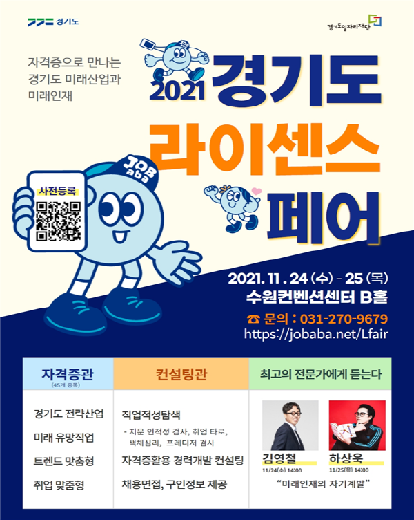 [프레스뉴스] 김대일 기자= 경기도와 경기도일자리재단은 ‘자격증으로 만나는 경기도 미래산업과 미래인재’ 라는 주제로 오는 24일과 25일 양일간 수원컨벤션센터에서 ‘2021 경기도 라이센스 페어’를 개최한다.