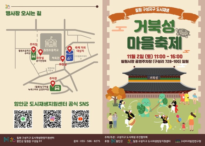 | ▲함안군은 ‘칠원 구성지구 도시재생 거북성 마을축제’가 오는 2일(토) 오전 11시부터 오후 4시까지 칠원읍 구성리 칠원시장 공영주차장 일원(구성리 728-100)에서 개최한다 (사진=함안군) |
