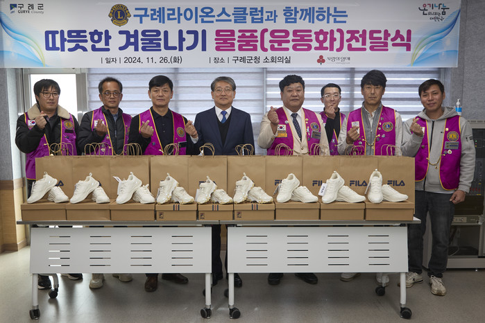 김순호 군수는 “경기침체와 한파로 더욱 어려운 시기에 따뜻한 나눔을 실천해주신 구례라이온스클럽에 감사드린다”며 “기탁받은 물품을 감사한 마음으로 잘 전달해 연말연시를 더욱 따뜻하게 만들겠다”고 전했다.