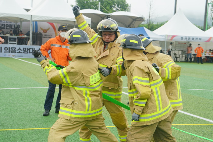 이날 소방경연은 소방호스 끌기, 수관 연장하고 방수자세, 개인장비 착용하고 릴레이 등 3개 종목으로 진행됐으며, 2부 화합행사로는 레크리에이션, 노래자랑 등을 통해 우의를 다지는 시간을 가졌다.