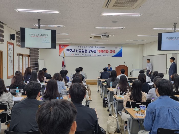 ▲ 진주시가 한국선비문화연구원에서 신규 공무원을 대상으로 역량강화 교육을 실시하고 있다.(사진=진주시) |
