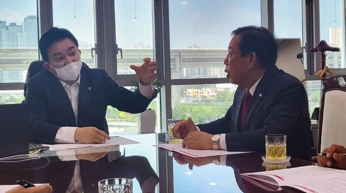 ▲ 원희룡 국토부장관이 7일 최민호 시장과의 면담에서 “국회세종의사당 및 대통령 세종집무실 건립 등이 예정되어 있는 만큼 KTX세종역 필요성에 공감한다”고 밝혔다. |