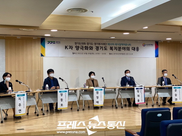 성은미 경기복지재단 연구위원의 ‘경기도 K자 양극화 현상’ 및 문승권 다산경영정보연구원 원장의 코로나19 이후 ‘소득보장정책의 전망’이라는 주제발표에 이어, 토론자로는 SB사이버대학 염정애 교수, 장동호 남서울대학교 교수, 경기도 복지정책과 지주연 과장가 참여하였다.