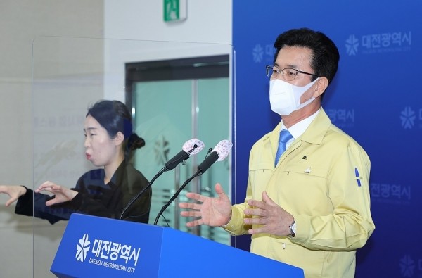 ▲ 허태정 대전시장이 브리핑 하고 있다. (사진제공=대전시) |