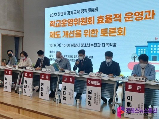 주제발표를 맡은 김영민 경기도의회 교육행정위원회 입법전문위원은 학교운영위원회 제도의 도입 배경과 의미를 진단하였으며, 학교운영위원회의 운영에 관한 현행 경기도 조례의 최근 7차례에 걸친 개정사항을 설명하면서 바람직한 학교운영위원회의 위상 정립을 위해 도의회가 그동안 진행해왔던 관심과 노력을 설명했다.