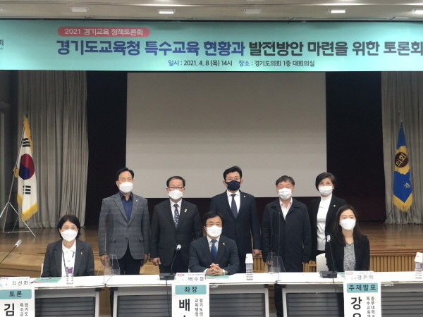 경기도의회와 경기도교육청이 주최·주관하는‘2021 상반기 경기교육 정책토론회’의 일환으로 열린 이 날 토론회는 배수문 의원이 좌장을 맡았으며, 강은영 교수(중부대학교 특수교육과)의 발제와 한규일 아름학교 교장, 김선희 경기도교육청 특수교육과장, 이혜진 경기도장애인부모연대 안양지회장, 송윤재 한국장애인부모회 부회장이 토론자로 참여해 열띤 토론으로 진행되었다.