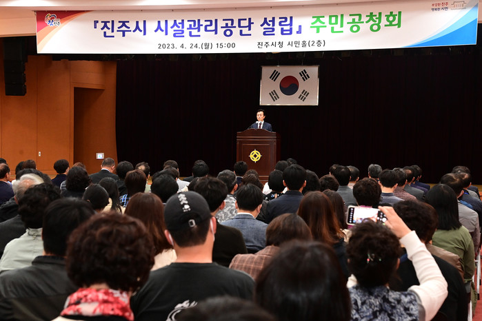 [프레스뉴스] 정재훈 기자= 진주시는 지난 24일 시청 시민홀에서 시민, 민간전문가, 시의원, 공무원 등 200여 명이 참석한 가운데 진주시 시설관리공단 설립 주민공청회를 개최했다.