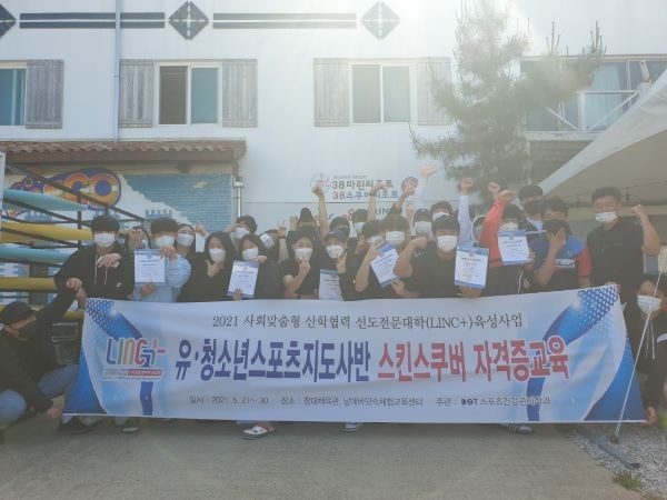 [프레스뉴스] 강기동= 대전과학기술대학교 LINC+ 사회맞춤형반인 유·청소년스포츠지도사반(스포츠건강관리학과)학생들이 스킨스쿠버 자격증 교육 프로그램 이수를 통해 스킨스쿠버 자격증을 전원 취득했다.