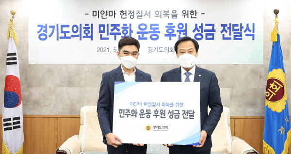 경기도의회는 17일 오전 의장 접견실에서 ‘재한미얀마유학생연합회 성금 전달식’을 개최했다.