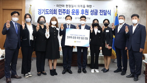 경기도의회 142명 도의원 전원이 자발적으로 참여한 이번 성금 모금에는 미얀마 민주화에 대한 지속적 지지의사를 밝히며 사회적 관심을 불러 모으고자 하는 의회의 의지가 담겼다.