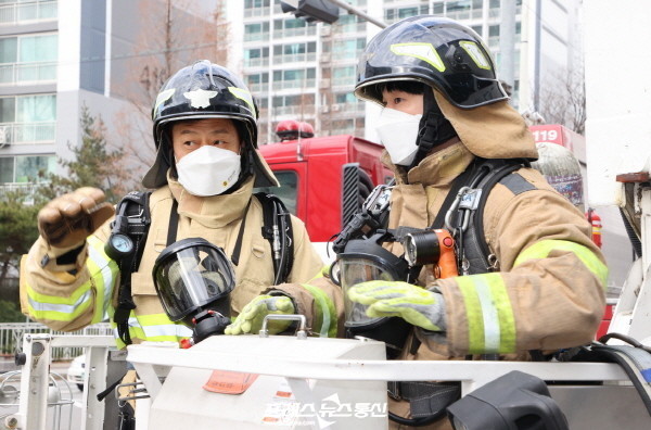 이어 청사시설을 두루 살펴본 뒤 현장 소방대원들과 유압스프레더, 매몰자 탐지기, 심폐소생기, 동력절단기 등 소방장비를 차례로 시연하며 신속한 사고대응과 화재진압을 위한 준비 및 훈련의 중요성을 강조했다.