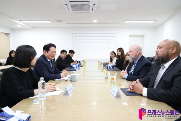 | ▲미국 가든그로브시 청소년들과 인솔자들이 19일 오전 9시 안양시청 3층 접견실에서 최대호 안양시장과 만나 이야기하고 있다.(사진=안양시) |
