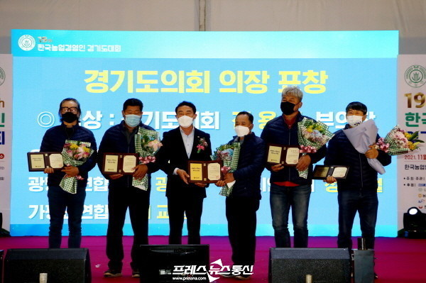 한편 이날 개회식은 시상, 감사패·후원금 전달, 결의문 낭독 등이 진행되었으며, 특히 진 부의장은 농업발전 유공자 5명에 대한 경기도의회 의장 표창을 전수하였다.