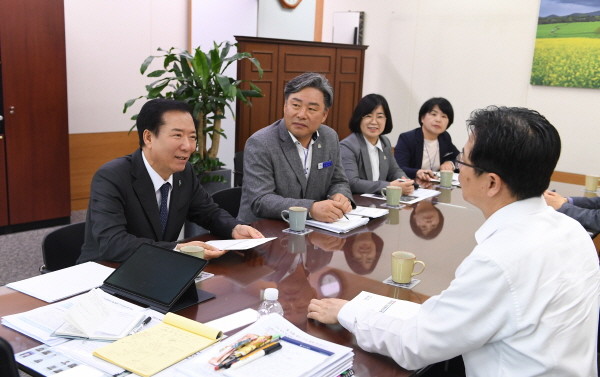 4월 23일 1일차는 △농산물산지유통센터 지원사업(농림축산식품부) △2단계 노후상수관망 정비사업(환경부) △남부권 보훈휴양원 건립(국가보훈부 / 국가직접) 등 3개 부처를 방문해 국비 지원을 건의했다.