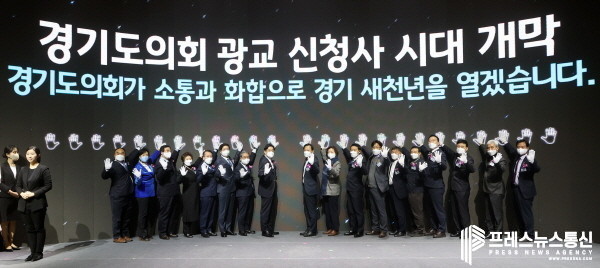 이와 함께 주요 참석자들이 LED 스크린에 손을 대자 ‘경기도의회 광교 신청사 시대 개막’이라는 메시지가 송출되는 형태의 축하의식이 연이어 실시됐다.