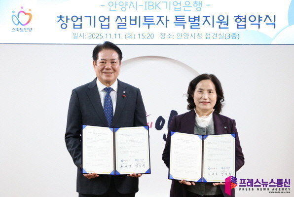 [프레스뉴스] 장현준 기자= 안양시와 IBK기업은행은 관내 창업기업의 설비투자 지원을 위해 ‘창업기업 설비투자 특별지원’ 업무협약을 체결했다고 11일 밝혔다.