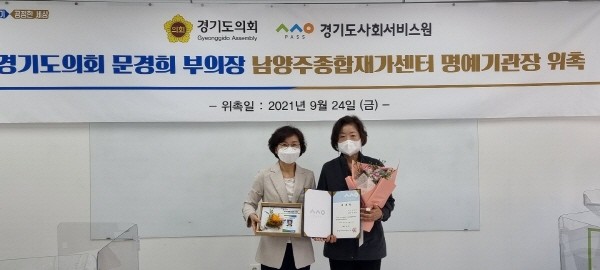 이날 명예기관장 위촉식은 위촉장 전달, 남양주종합재가센터 사업보고, 서비스대상 가정 방문의 순서로 진행됐으며, 이화순 경기도사회서비스원장, 전해진 남양주종합재가센터장, 김혜령 전담관리자, 이향미 방문요양사회복지사 등이 참석했다.