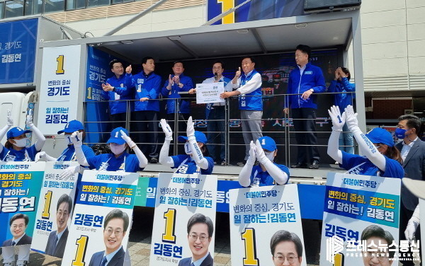 | ▲ 제종길 더불어민주당 안산시장 후보와 김동연 경기도지사 후보는 상록수역 광장에서 총괄선대위원장인 전해철‧김철민‧고영인‧김남국 국회의원 등이 참석해 안산정책비전 선포식을 열고 합동유세를 펼쳤다.(사진=제종길 안산시장 후보) |