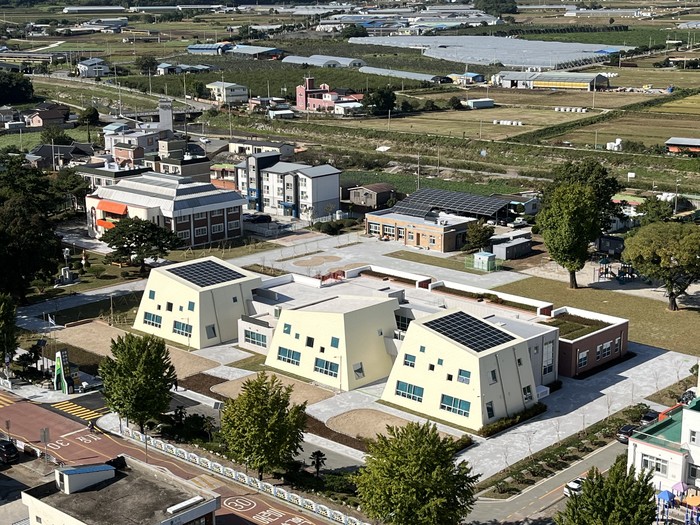 특히 학교 중정 공간을 도서관과 이어지도록 꾸며, 놀이와 학습이 자연스레 병행할 수 있도록 했으며 교실 천정고를 높여 개방감을 줬다. 학교 건축물은 주변 생태환경과의 조화를 고려해 조성했으며, 학생들의 잔디정원과 옥상 텃밭은 놀이 활동‧생태교육의 장으로 활용될 것으로 기대된다.