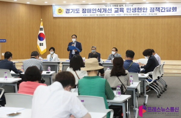 [프레스뉴스] 김대일 기자= 경기도의회 교섭단체 더불어민주당(대표의원 남종섭, 용인3)는 28일(목) 경기도의회 대회의실에서 ‘경기도 장애 인식개선 교육 민생현안 정책간담회’를 진행했다.
