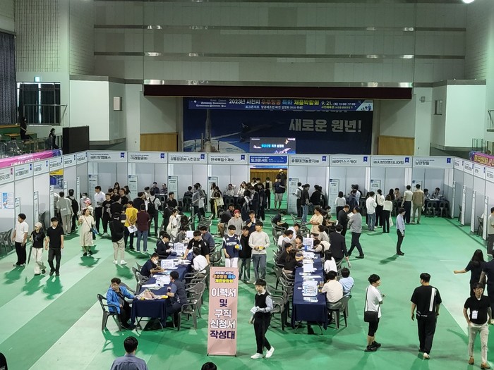 지난 21일 오후 1시부터 5시까지 사천체육관에서 열린 ‘2023 사천시 우주항공특화 채용박람회’에는 500여 명의 학생과 구직자가 방문, 취업을 위한 열기로 가득했다.