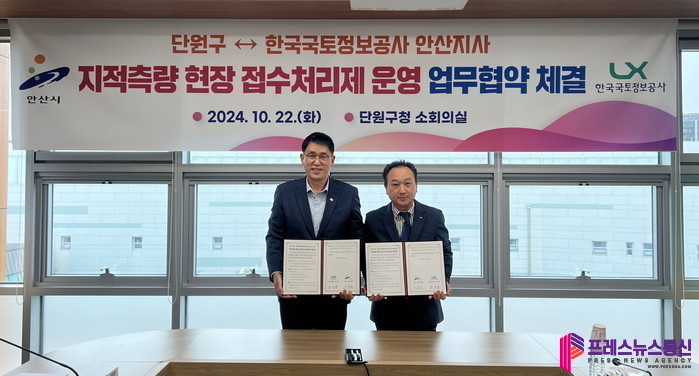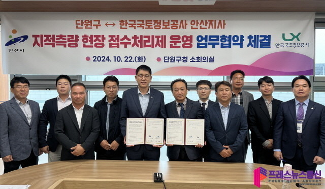 [프레스뉴스] 장현준 기자= 안산시 단원구(구청장 이동표)는 지난 22일 단원구청 소회의실에서 한국국토정보공사 안산지사와 지적측량 현장 접수처리제 운영을 위한 업무 협약을 체결했다고 23일 밝혔다.