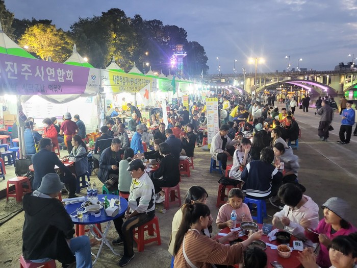 [프레스뉴스] 정호일 기자= 진주시는 10월 축제기간 천수교 아래 망경동 둔치에서 진주음식큰잔치 8개 부스를 운영하고 있다.