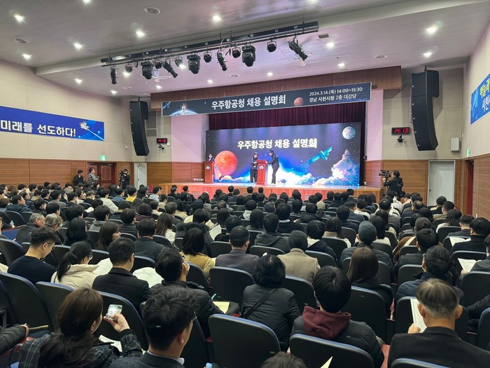 과학기술정보통신부 우주항공청설립추진단은 14일 사천시청 대강당에서 우주항공분야 전문가, 기업인, 대학생 등 400여 명이 참석한 가운데 우주항공청 채용 설명회를 개최했다.