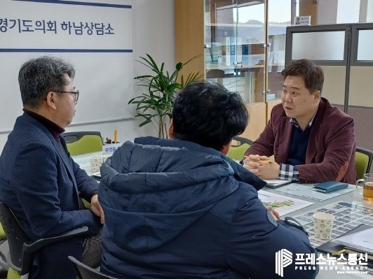 [프레스뉴스] 김대일 기자= 경기도의회 도시환경위원회 김성수(국민의힘·하남2) 의원은 6일 경기도의회 하남상담소에서 경기주택도시공사(이하 GH) 하남사업단 단장으로부터 하남교산 공공주택지구 (가칭)주민생계조합 협의 추진현황을 보고받고 주요 현안을 논의하는 자리를 가졌다.