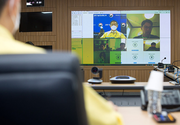 ▲이종호 과학기술정보통신부 장관이 17일 세종특별자치시 세종파이낸스센터 과기정통부 재난안전 상황실에서 열린 ‘방송통신재난대책본부 점검회의’에 참석해 카카오 등 서비스 장애 및 복구 현황을 점검하고 신속한 복구를 독려하고 있다. (사진=과학기술정보통신부) |