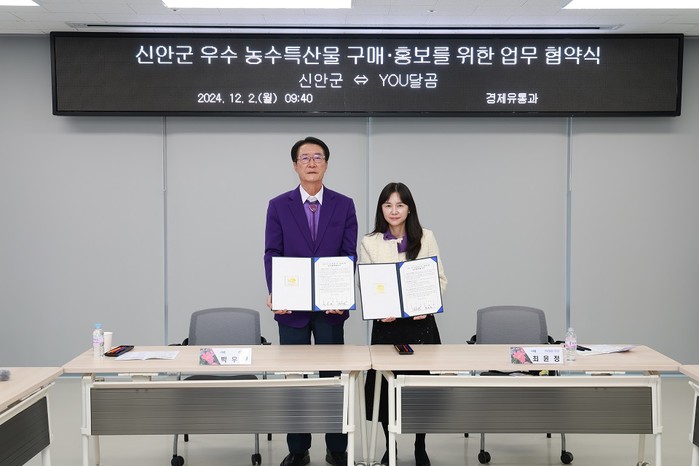 [전남=프레스뉴스] 강래성 기자= 신안군은 우수 농수특산물 구매 및 홍보를 위해 목포시 청년상인 모임인 YOU달곰과 지난 2일 업무협약을 체결했다.