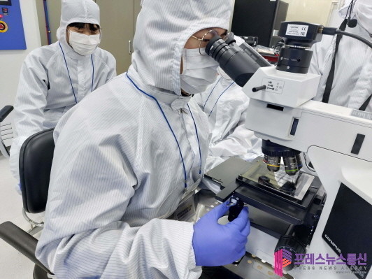 | ▲반도체 분야 특성화고 교육에 참여한 한 학생이 광학현미경으로 반도체 포토마스크를 관찰하고 있다.(사진=차세대융합기술연구원) |